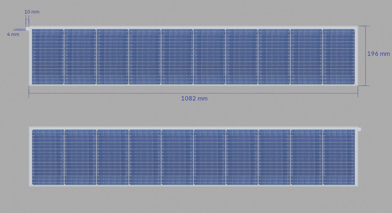 Standardized 10-half-cell photovoltaic laminates available for testing and evaluation.